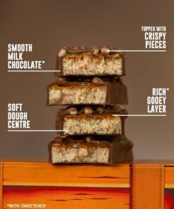 This triple-layered high-protein treat is loaded with delicious salted peanuts, soft nougat and smooth caramel, all wrapped in a white chocolate coating. Like all our high protein bars, it’s jam-packed with protein and a yummy taste, without those unwanted sugars and carbs!