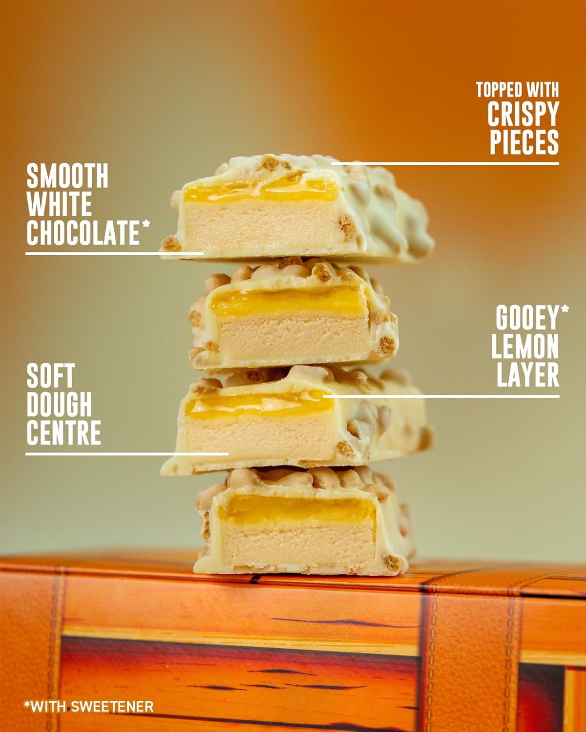 Loaded with 21g protein and only 1.6g sugar, each bar features a vanilla-flavoured nougat centre, topped with a zesty lemon curd caramel layer. And if that wasn’t enough, we’ve blitzed each one with biscuit bits and covered it in smooth white chocolate. It’s time to squeeze the day!