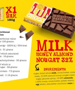 - Tony’s creamy milk chocolate as you know it from us, filled with firm bits of caramel and a grain of sea salt. Perfect to give as a gift!