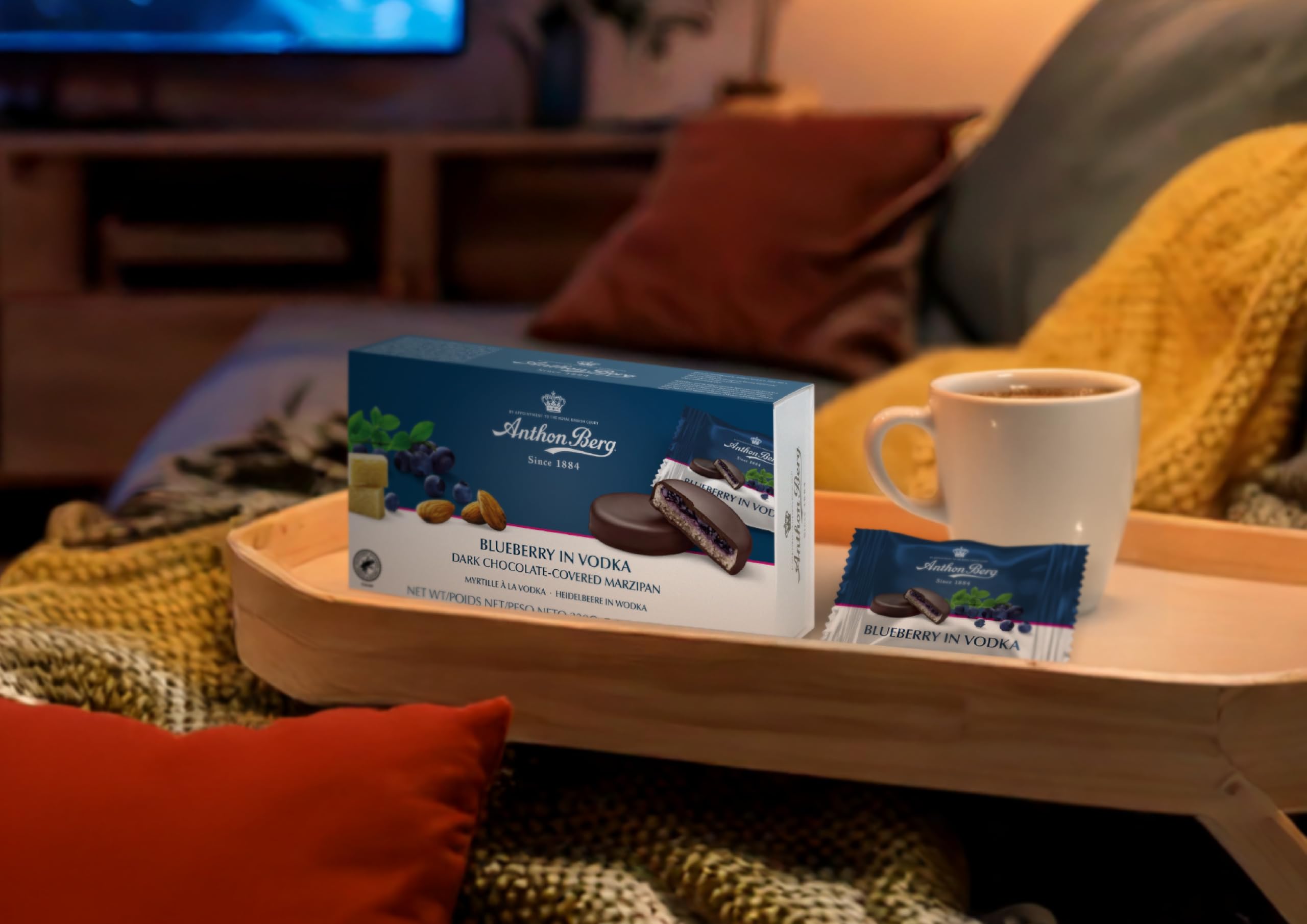 Anthon Berg Dark Chocolate Covered Marzipan Treats with Blueberry in Vodka, 220g