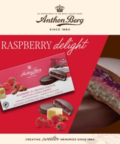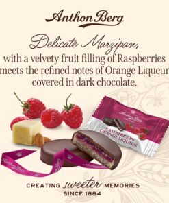 Anthon Berg Dark Chocolate Covered Marzipan Treats with Raspberry and Orange Liqueur – 220g