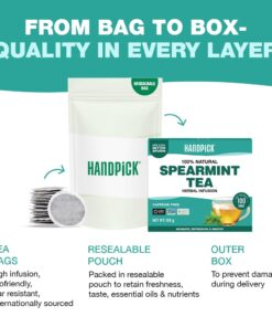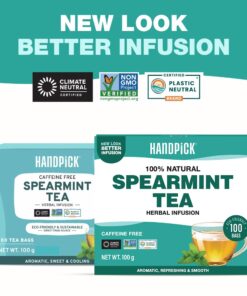 HANDPICK Spearmint Tea Bags (100 Count) Non-GMO, 100% Pure Spearmint Leaf, Tea Board of India Certified