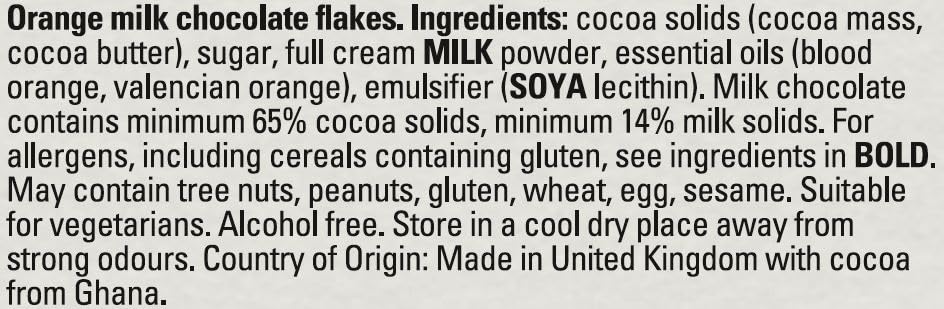 - Ingredients: cocoa solids (cocoa mass. cocoa butter). sugar. full cream MILK powder. essential oils (blood orange. orange). emulsifier (SOYA lecithin)