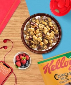 Kellogg’s Crunchy Nut Hazelnuts & Chocolate Granola offers a delicious blend of wholegrain oats. crunchy clusters. and rich chocolate chunks with roasted hazelnuts for a satisfying breakfast experience. Baked to perfection. this granola combines taste and nutrition to start your day right.