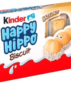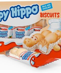 Kinder Happy Hippo Hazelnut Biscuit Wafer with Milk and Hazelnut Filling, 10 Packs of 5 Biscuits (50 Total)