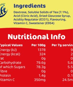 Lift Instant Lemon Flavoured Tea offers a tangy and refreshing alternative to traditional hot beverages. enjoyed for generations for its fruity taste and instant convenience. Perfect for any time of day. it delivers a zesty lemon flavour that can be enjoyed hot or chilled for a revitalizing drink experience.