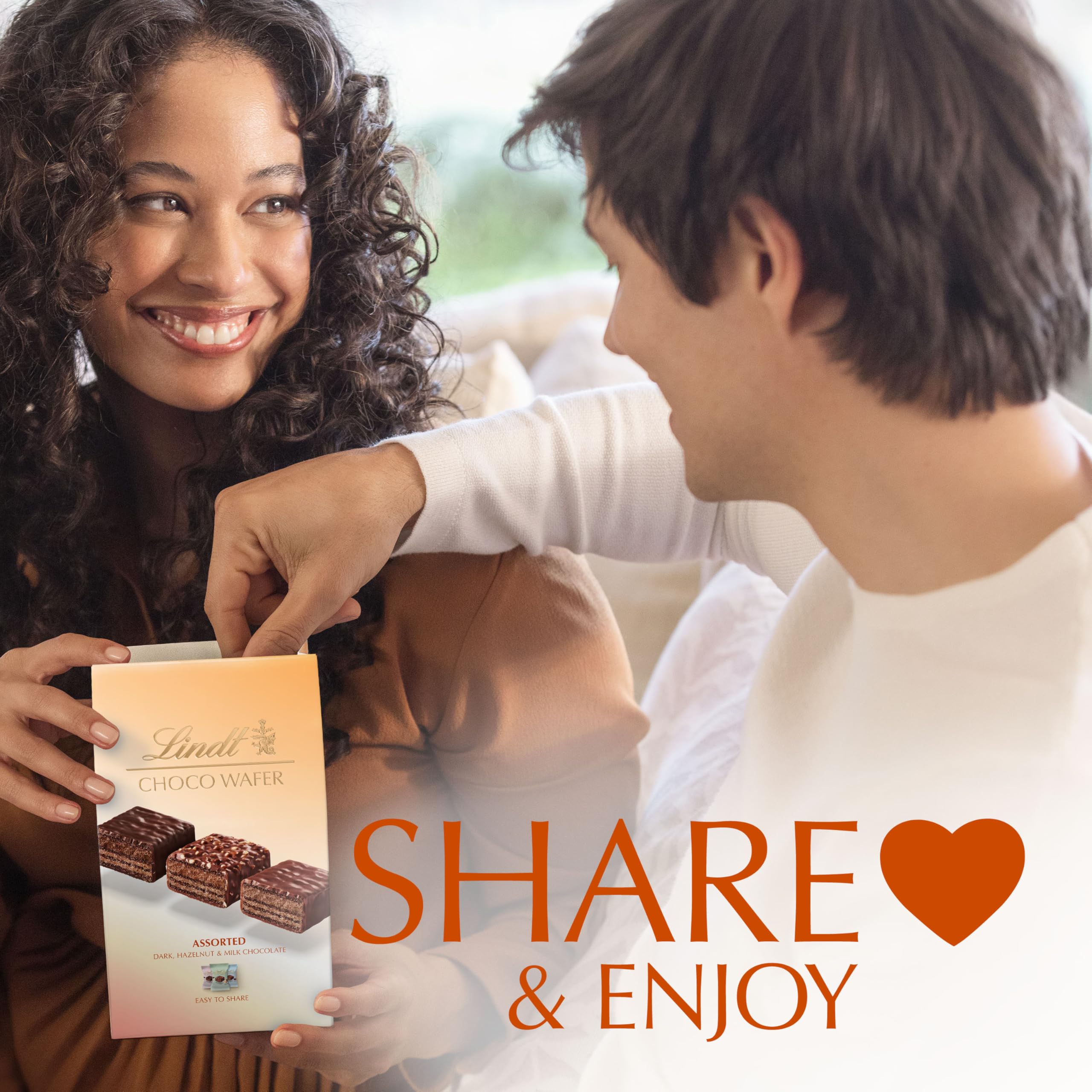 Indulge in the luxurious layers of crispy cocoa wafers and the finest Lindt chocolate with the Choco Wafers Assorted Box. Crafted by Lindt Master Chocolatiers since 1845. each of the 9 wafers delivers a perfect balance of crunch and creamy texture in a delightful fusion of milk chocolate. dark chocolate. and milk chocolate with roasted hazelnuts.