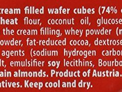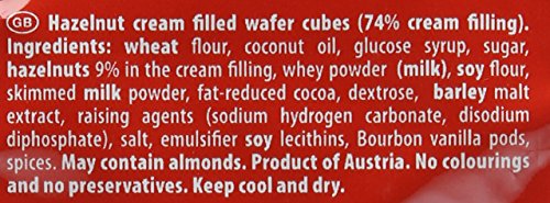 Loacker Quadratini Mini Wafer Biscuits in Napolitaner Hazelnut flavour combine five light crispy wafers with four layers of smooth cream made from 100% Italian hazelnuts. These bite-sized cubes are perfect for a quick snack. ideal with coffee or tea. and great for sharing. Crafted in the Dolomites using premium natural ingredients. they contain no artificial colourings. preservatives. vanillin. or hydrogenated fats.