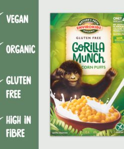 Enjoy a delicious. wholesome breakfast with Nature’s Path EnviroKidz Gorilla Munch Organic Corn Puffs. This gluten free. vegan. and dairy free cereal is made with whole grain organic corn. offering a crunchy and satisfying start to your day. With 6.7 g of fiber per 100 g and no artificial flavors. colors. or preservatives. it’s a healthy choice for kids and adults alike.