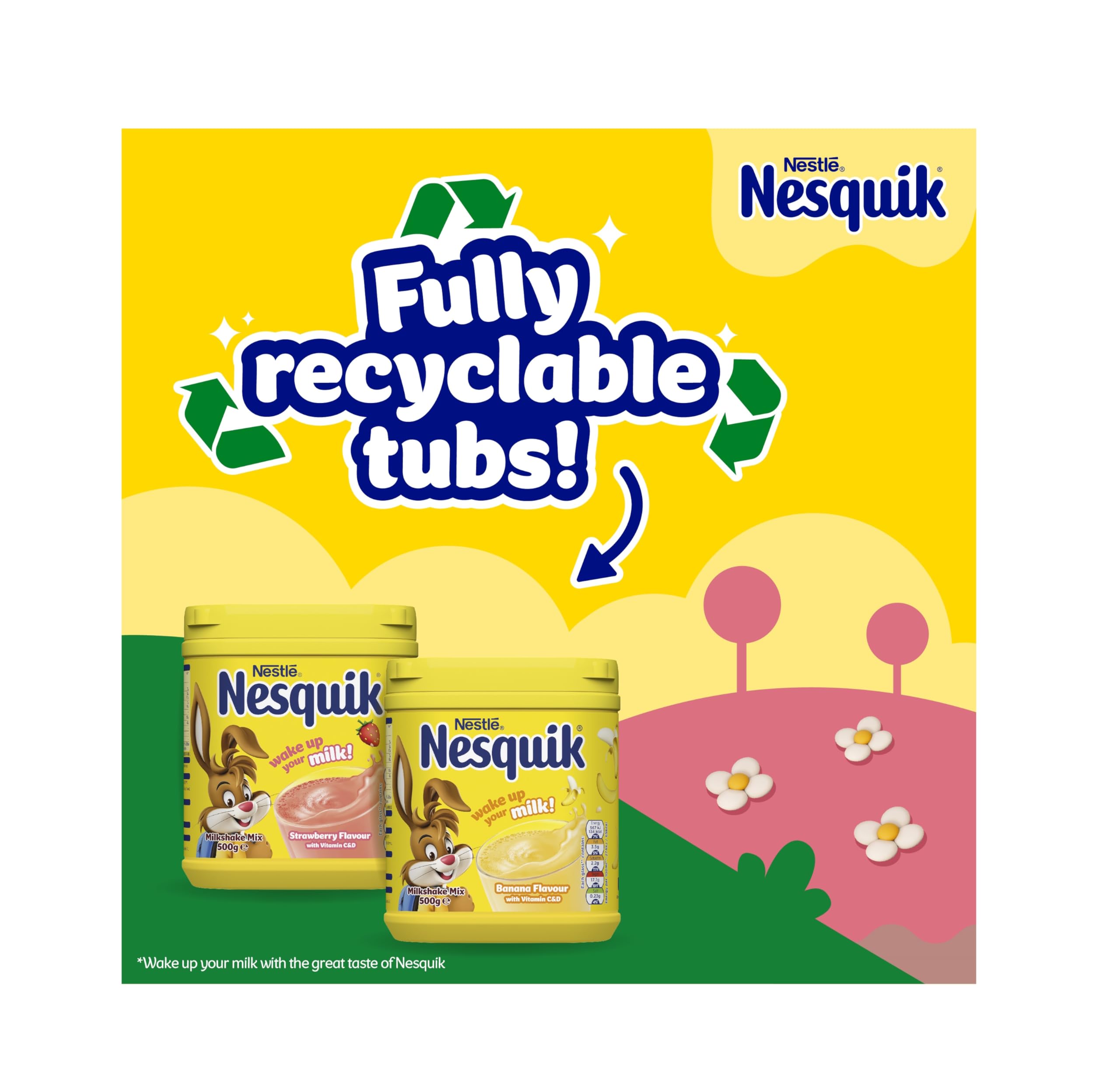 Nesquik – Strawberry Flavoured Milkshake Powder with Vitamin D, 500g Tub