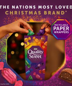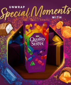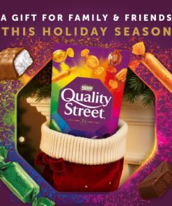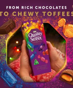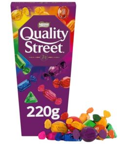 Enjoy the beloved classic mix of Quality Street chocolates and toffees. a timeless treat cherished by generations. This 220g festive carton features a vibrant assortment of individually wrapped sweets. including fan favourites like The Purple One and Strawberry Delight. offering a variety of creamy. crunchy. and chewy textures in every bite.