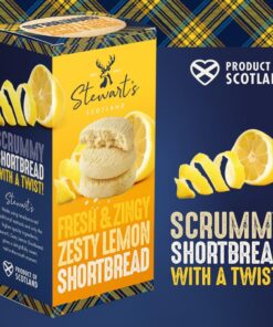 Indulge in the rich. buttery taste of Stewart’s Signature Range Lemon Curd Shortbread. a delicately crafted Scottish treat combining traditional shortbread with a smooth. zesty lemon curd filling. Made using time-honored methods. each bite delivers a perfect balance of crisp. melt-in-the-mouth texture and bright citrus flavor.