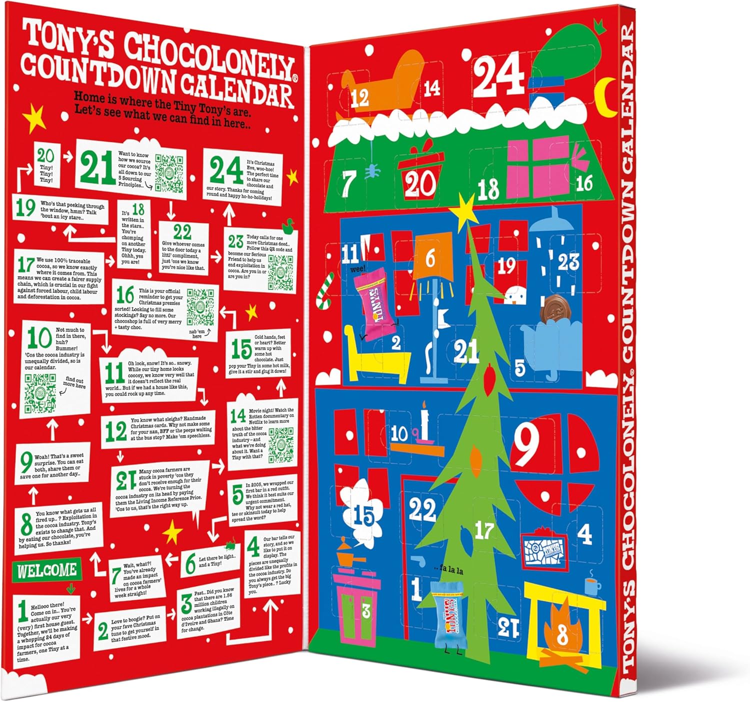 Tony’s Chocolonely Big Advent Calendar – Christmas Countdown 25 Chocolates – Mix of 10 Tiny Tony’s Flavours – Vegetarian – Belgian Fairtrade Chocolate