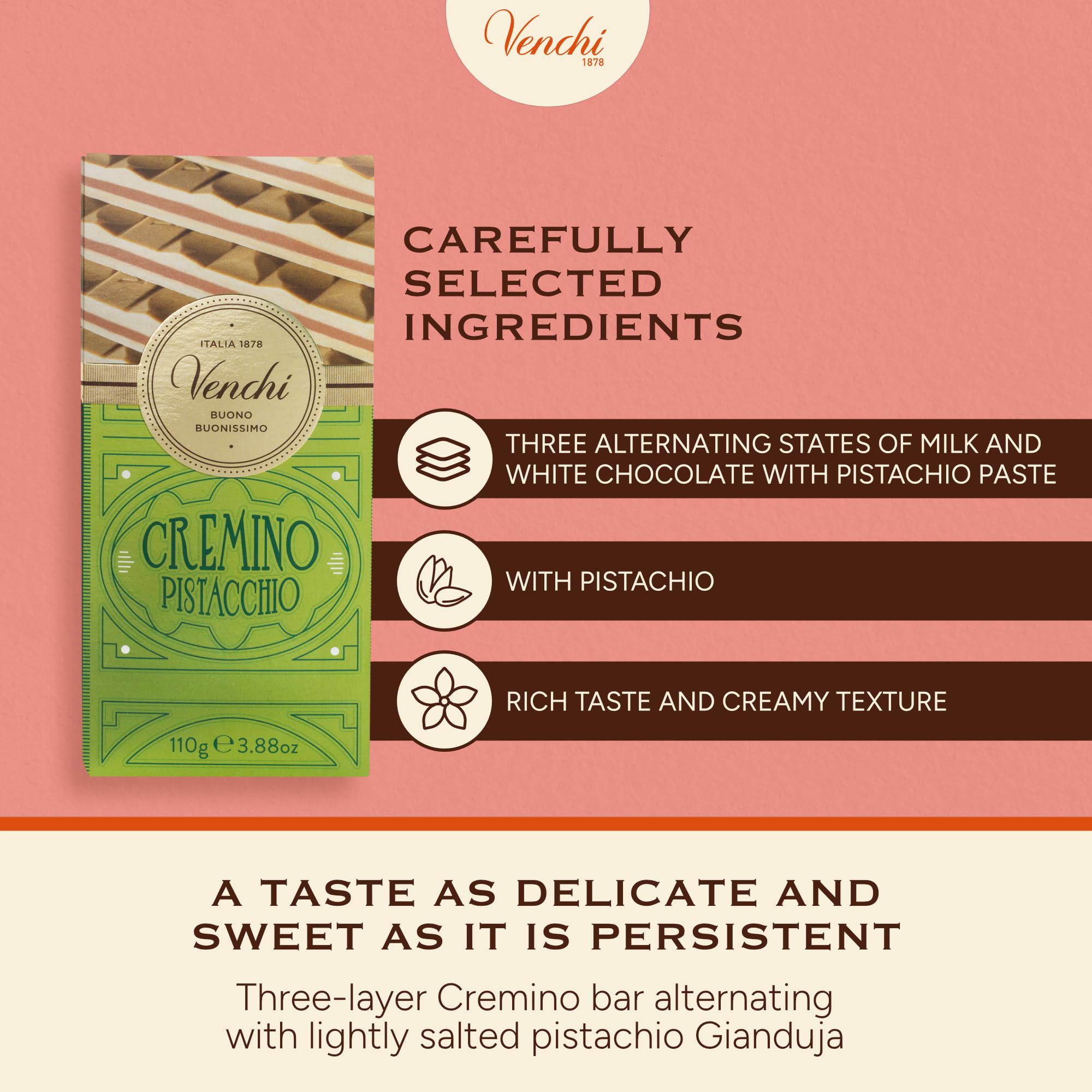Venchi Cremino Bar Pistachio, Milk and White Chocolate with Pistachio Paste