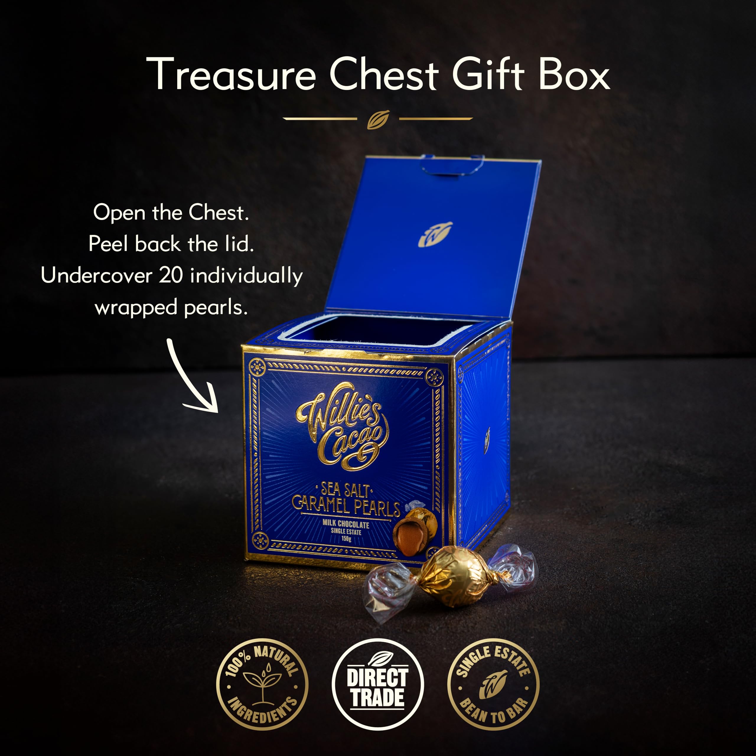 Willie’s Cacao – Milk Chocolate Salted Caramel Pearls 150g – Gift Box of 20 Individually Wrapped Artisan Chocolates